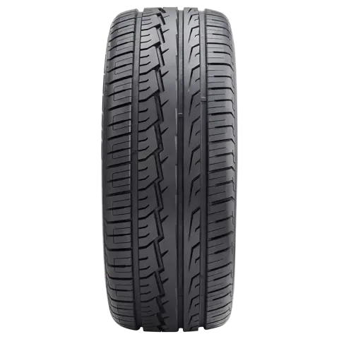 - Large contact patch with continuous center rib enhances directional stability and cornering grip at highway speeds.